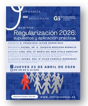 Madrid, 23 de abril de 2026.– Hoy ha tenido lugar el webinar “Regularización 2026: Supuestos y aplicación práctica”, en el que han participado más de 1.000 colegiados. La sesión ha estado a cargo de Francisco Javier Durán Ruiz, jefe de la Oficina de Extranjería en Almería, quien abordó de manera clara y práctica los principales supuestos del proceso de regularización, así como su aplicación en casos reales.