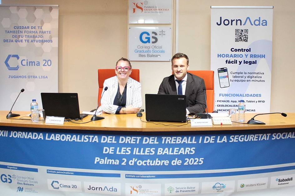 El Il·lustre Col·legi Oficial de Graduats Socials de les Illes Balears celebró el jueves, 2 de octubre, en la sede colegial de Palma, la XII Jornada Laboralista de Derecho del Trabajo y de la Seguridad Social de Baleares, con aforo completo y una participación muy activa de profesionales, despachos y responsables de recursos humanos.