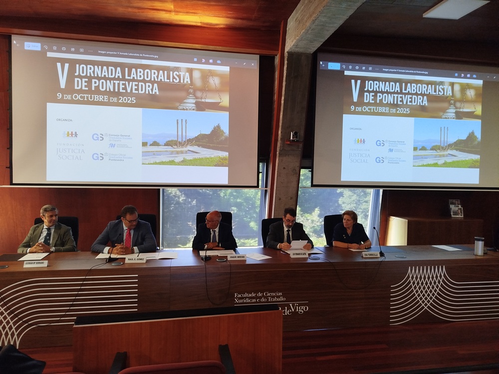 Madrid, 10 de octubre de 2025.- El Colegio de Graduados Sociales de Pontevedra organizó ayer junto con la Fundación Justicia Social su V Jornada Laboralista, que tuvo lugar en la Facultad de Ciencias Xurídicas e Do Traballo de la Universidad de Vigo.
