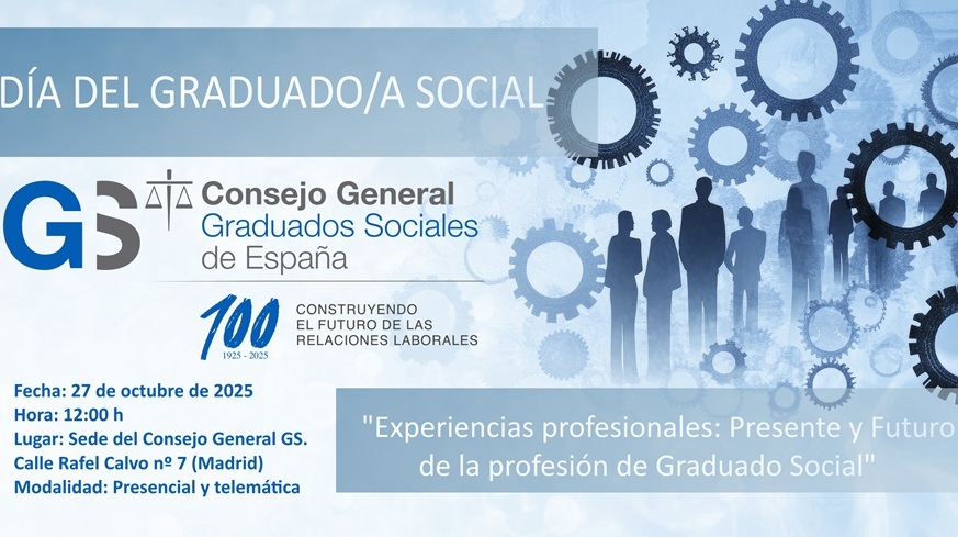 Madrid, 15 de octubre de 2025.- Con motivo del Día del Graduado Social, el próximo 27 de octubre a las 12:00 horas tendrá lugar la jornada titulada “Experiencias profesionales: Presente y Futuro de la profesión de Graduado Social”, un encuentro que po...