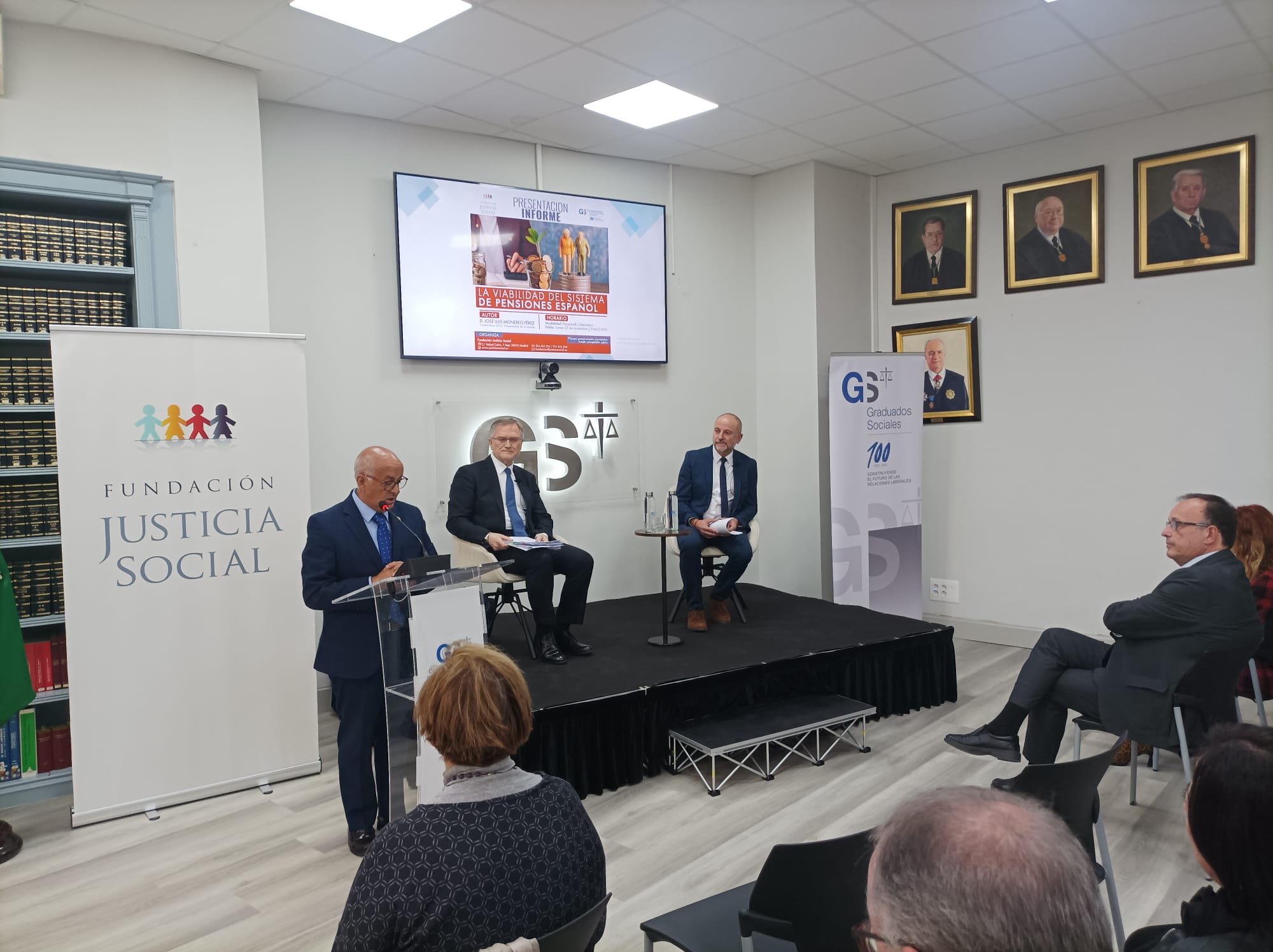 Madrid, 2 de diciembre de 2025. La Fundación Justicia Social ha presentado en la sede del Consejo General de Graduados Sociales de España en Madrid el informe "LA VIABILIDAD DEL SISTEMA DE PENSIONES ESPAÑOL", un estudio que refleja dos grandes desafíos, por un lado el envejecimiento demogr...