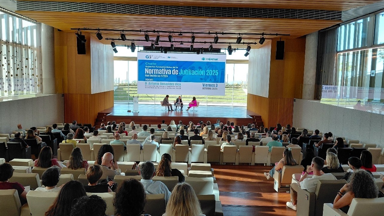 Almería, 6 de octubre de 2025.- Durante la mañana del pasado viernes 3 de octubre, este Colegio de Graduados Sociales, junto a la colaboración de CAJAMAR, organizaron conjuntamente una Charla formativa sobre “Aspectos Fundamentales de la Normativa de Jubilación 2025”, en el salón de actos de Cajamar en el PITA, donde se dieron cita más de doscientos profesionales interesados en esta materia.
